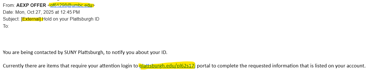 *How can you tell this is a scam? - Hint look at all the yellow highlighted