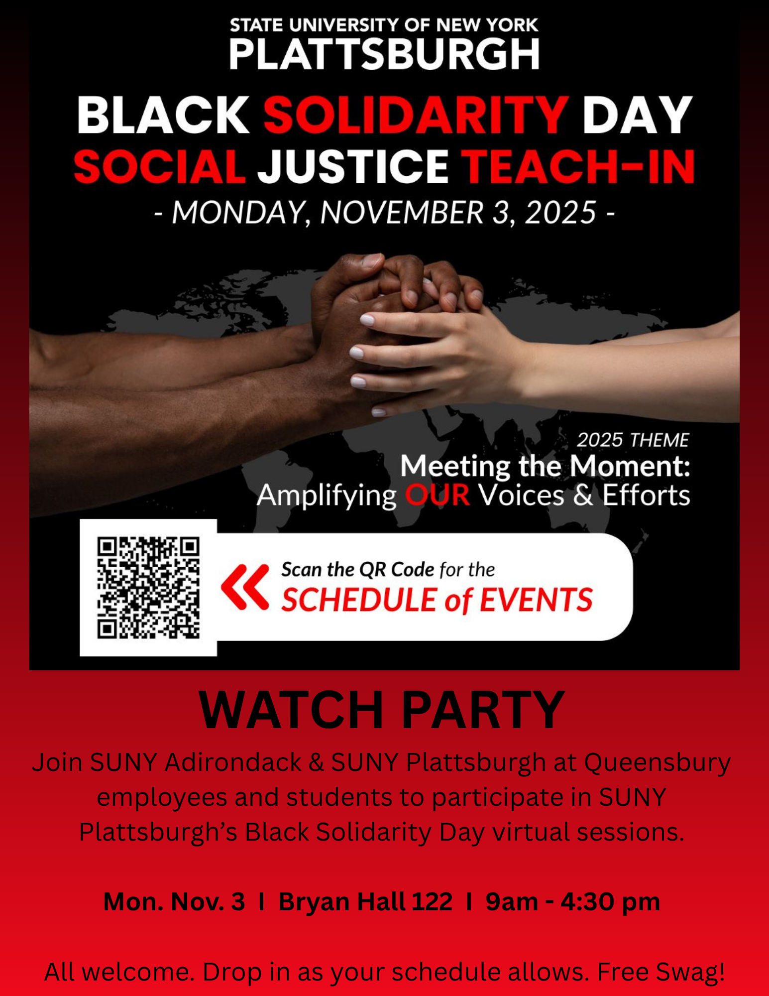 [Important Information for Queensbury Campus Employees] QUEENSBURY CAMPUS: Black Solidarity Day Watch Party 11/3 - All Welcome.
