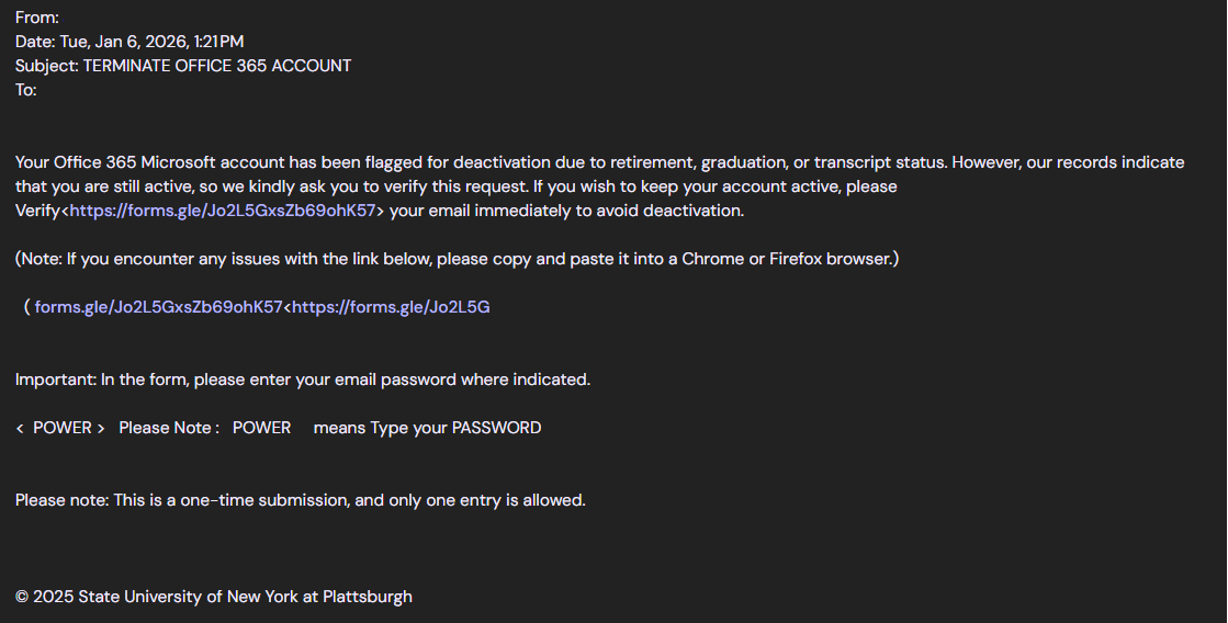 [Important Information for Students] Phishing Scam ALERT - 1/6/2026