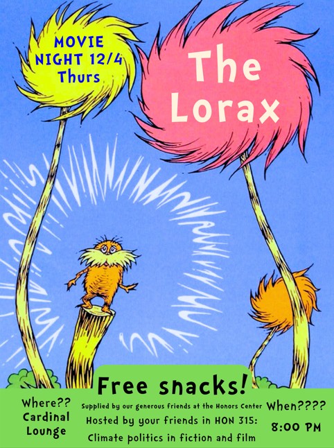 Join HON315: Climate Politics in Fiction in Film for a mini-film series