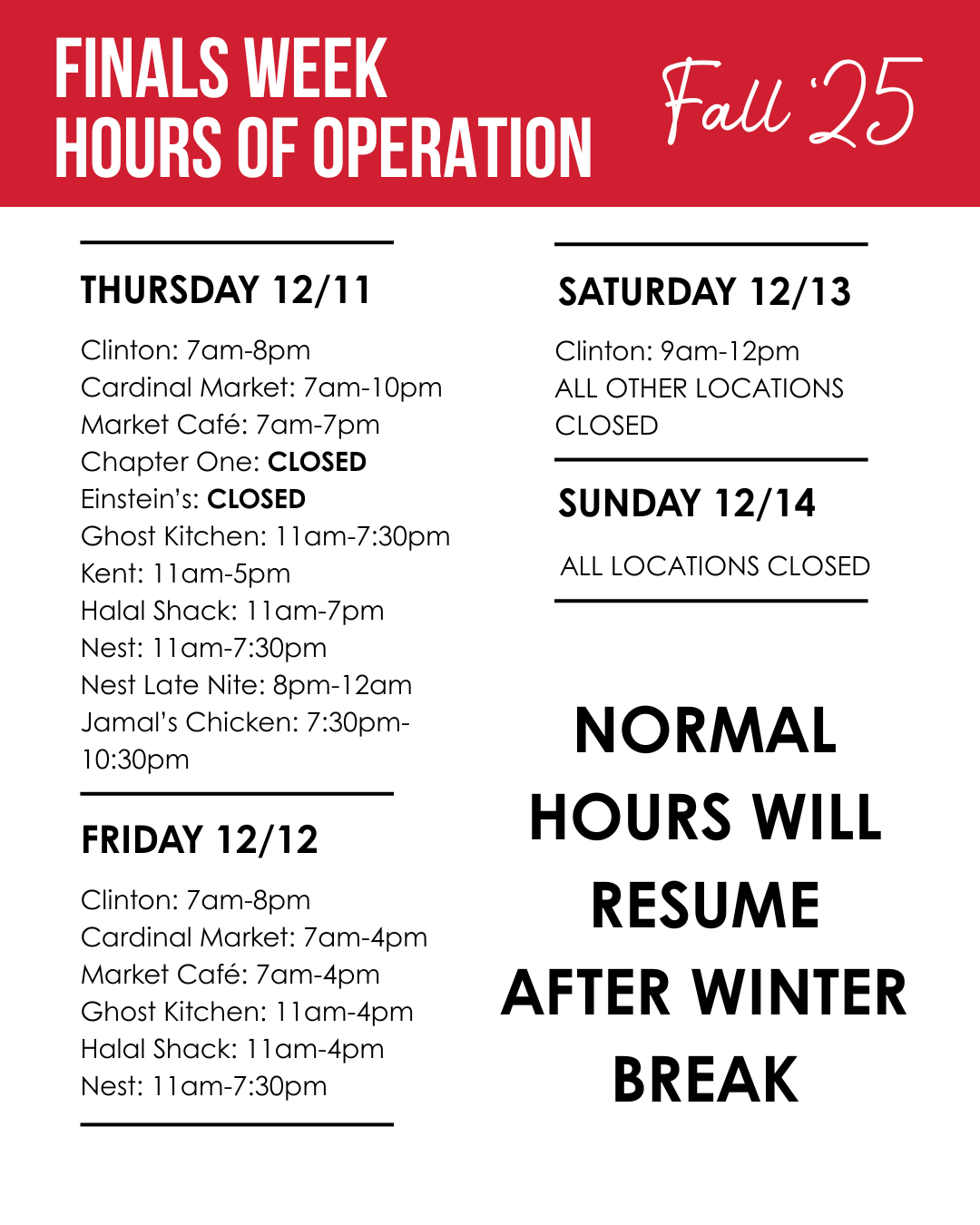 DINING HOURS -- FINALS WEEK