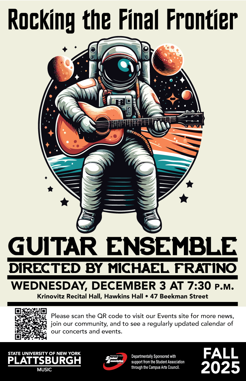 The Fall 2025 Guitar Ensemble will be on December 3 at 7:30 p.m.at the