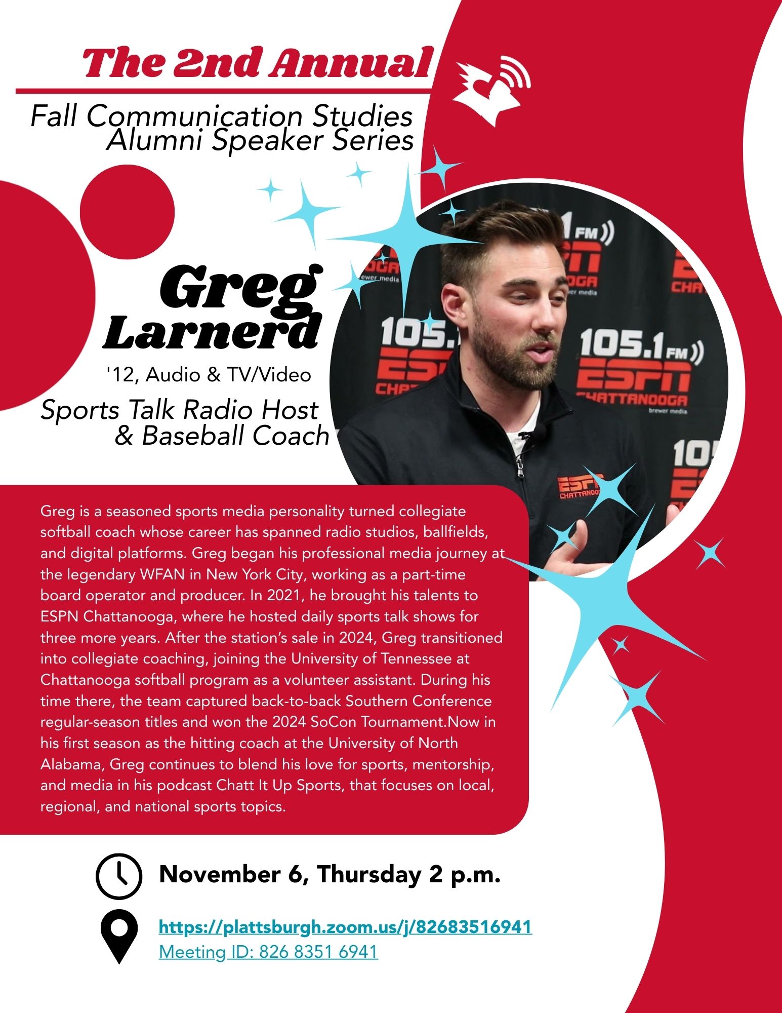 encouraged to attend. On Thursday, November 6, we present *Greg Larnerd,* a