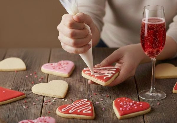 Sip on a "Cupid's Kiss" (cocktail or mocktail) as you get creative frosting