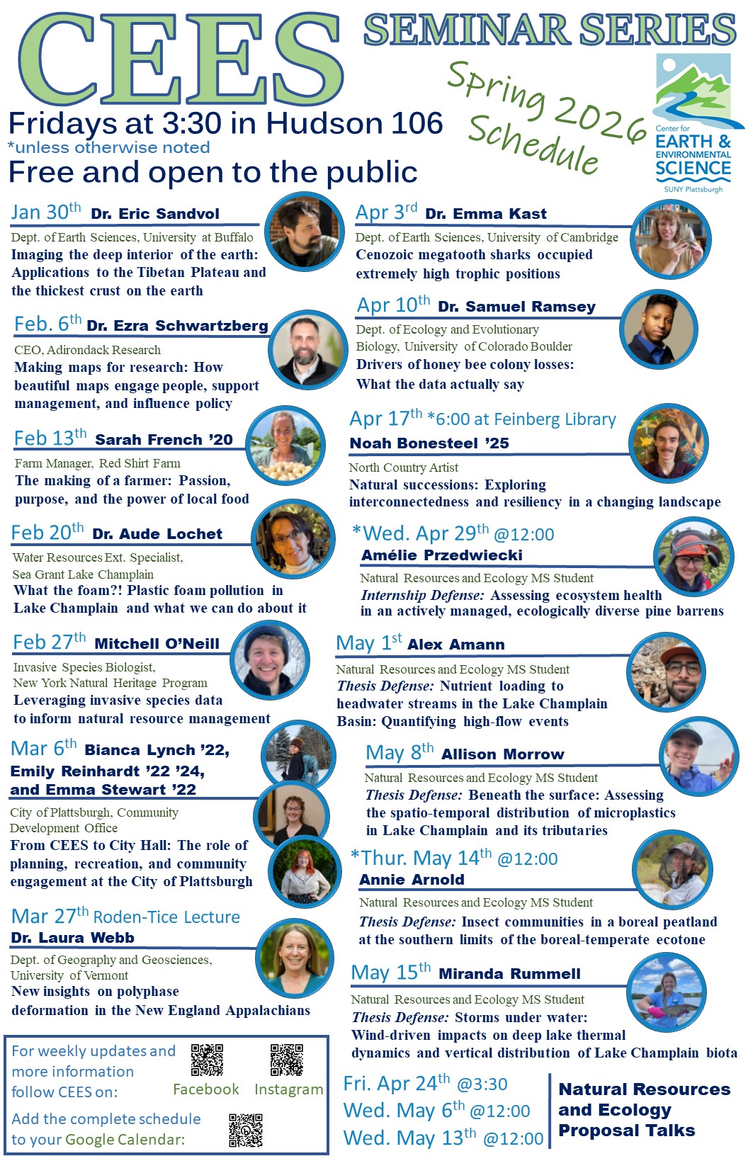 <https://www.facebook.com/SUNYPlattsburghCEES> or Instagram