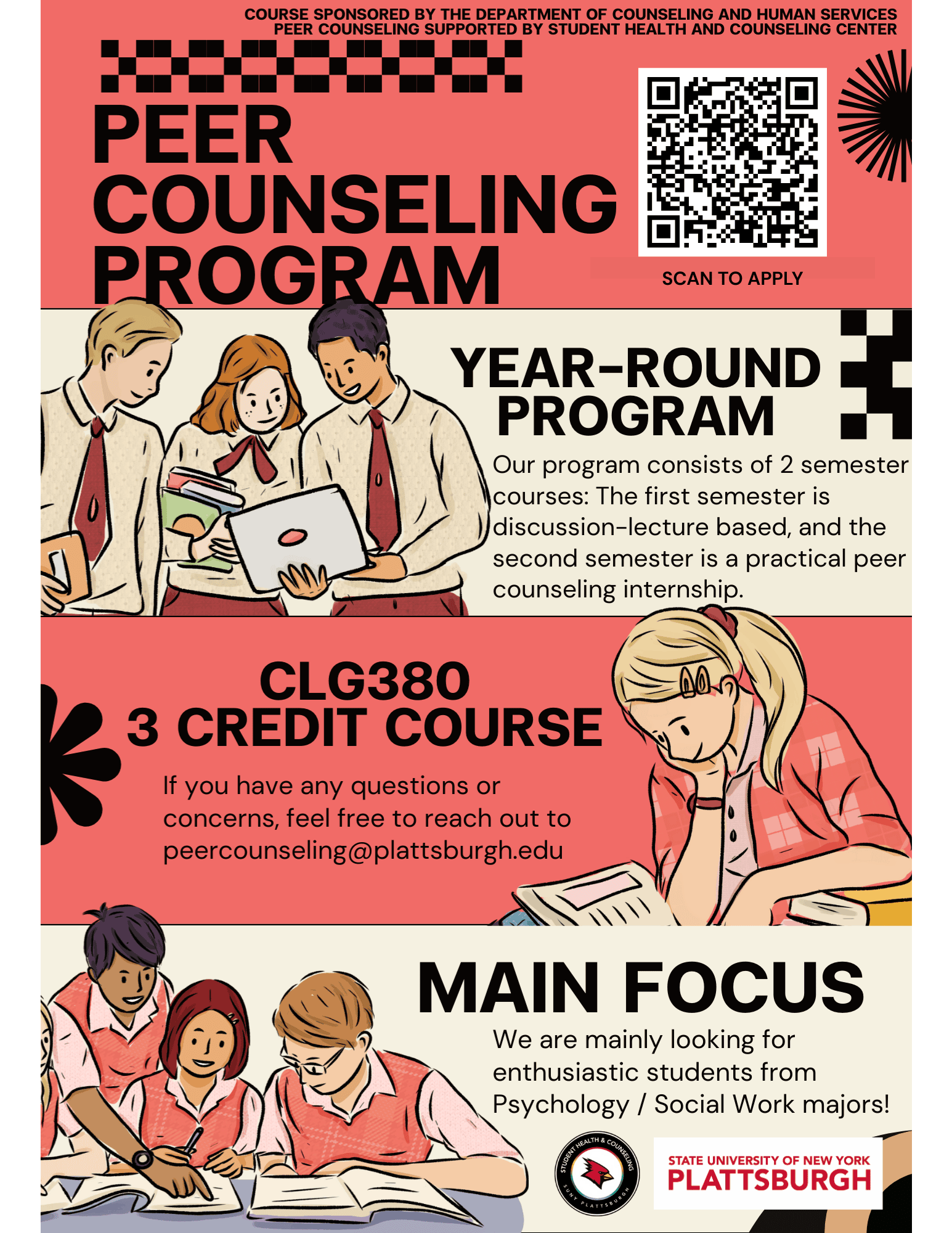 peercounseling at plattsburgh.edu. CLG 380 will be offered in the Spring of