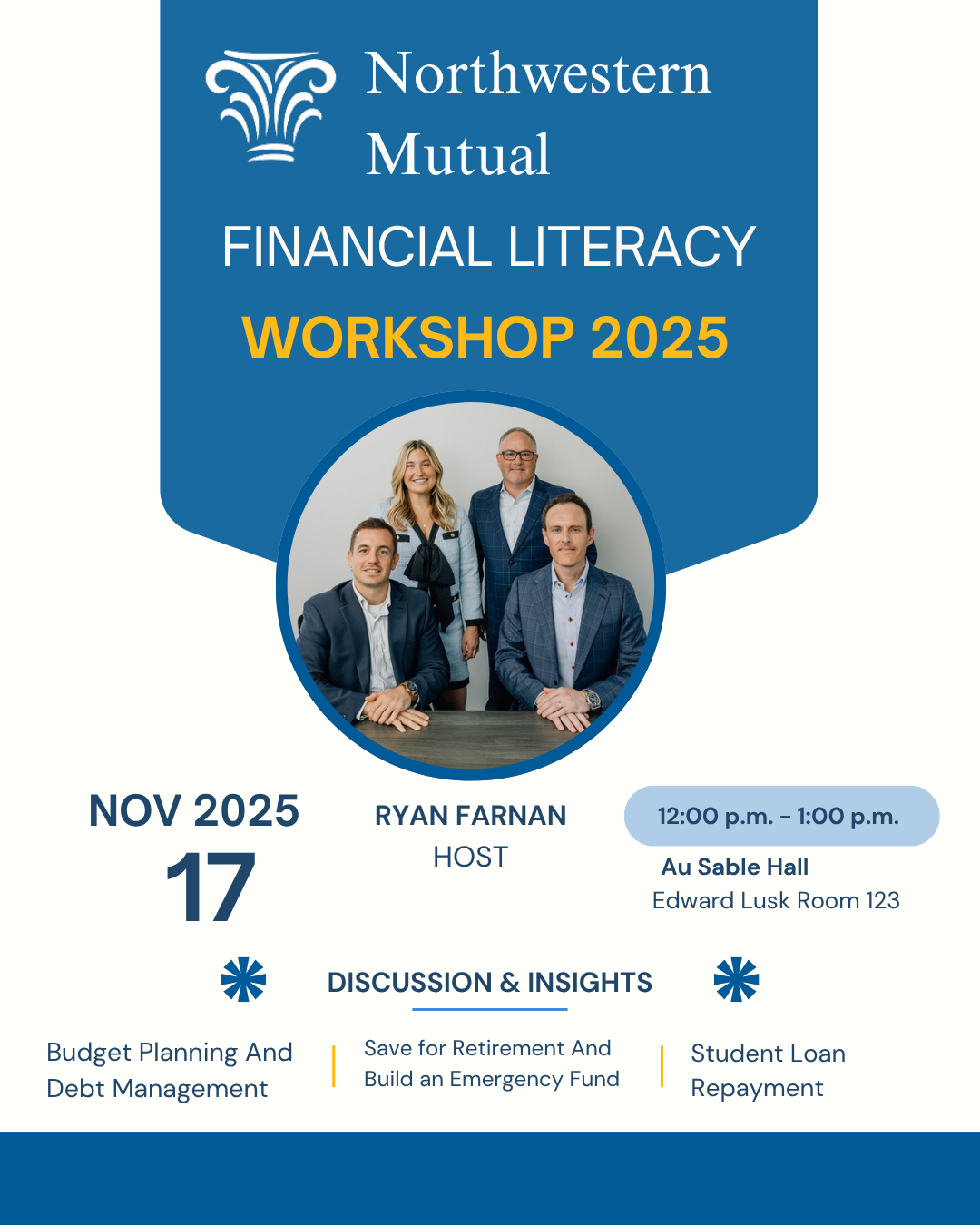 for a Financial Literacy Workshop on Monday, November 17th from 12 to 1 PM