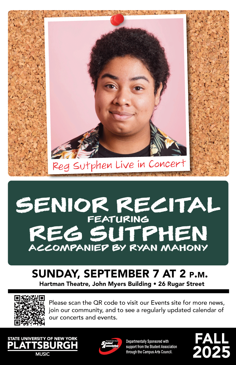 fall senior recital featuring Reg Sutphen on Sunday, September 7, 2025. Reg
