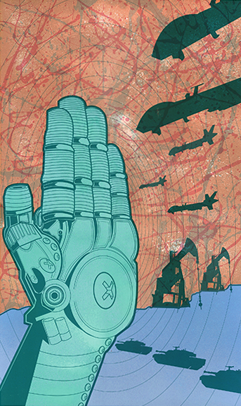 Meltz uses printmaking, animation, sculpture, and performance to comment on