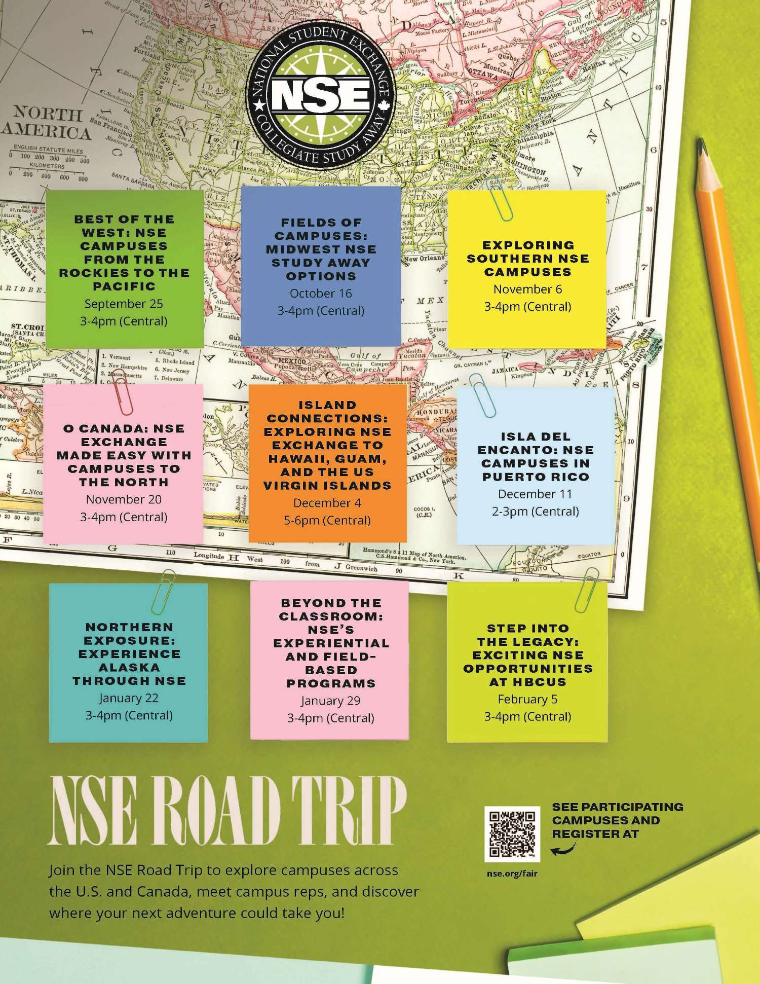 National Student Exchange is hosting a Road Trip Webinar series, allowing