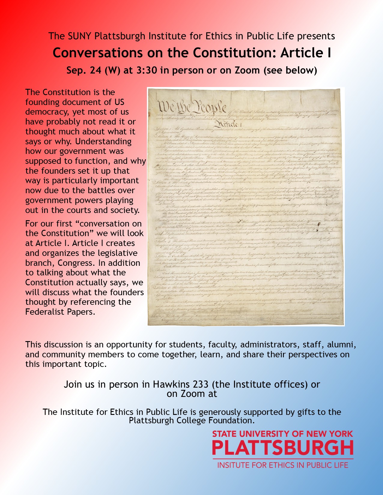 for Ethics in Public Life (Hawkins 233) or on Zoom (see below).