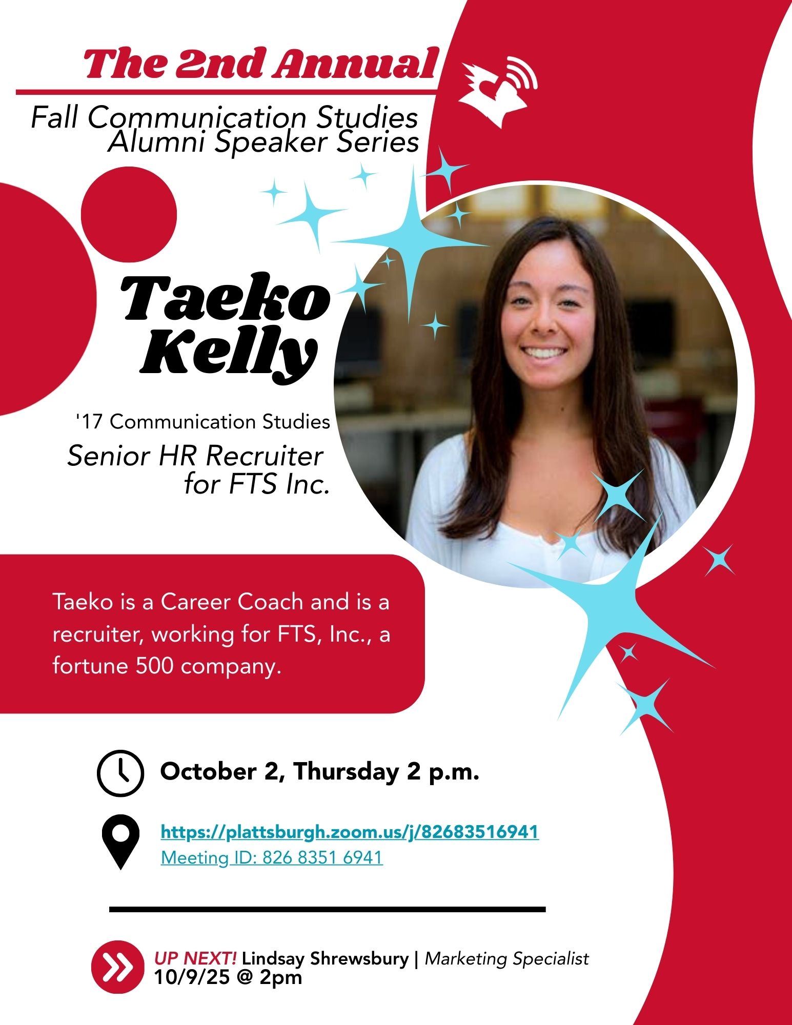Recruiter for FTS, Inc., a Fortune 500 company. She will speak to students